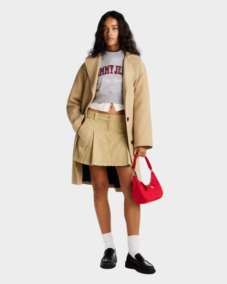 חצאית ג'ינס מיני לנשים בעיצוב מחמיא מבית טומי ג'ינס. עשויה דנים עם גמישות קלה לנוחות מרבית וחופש תנועה. חלק מהמוצר עשוי כותנה אורגנית מוסמכת – ידידותית לסביבה ולעור שלך.