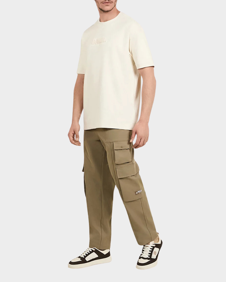 חולצת טי שירט אופנתית לגברים מבית האופנה באלר, בגוון קרם אלגנטי ובגזרת אוברסייז מחמיאה. עשויה מתשלובת כותנה איכותית, רכה וגמישה המבטיחה נוחות מקסימלית לאורך כל היום. מעוטרת בלוגו BALR רקום בחזה ובגב הצווארון לעיצוב מדויק ומוקפד. פריט פרקטי שמשתלב נהדר עם מגוון רחב של סגנונות – מקז'ואל ועד לוק מתוחכם.