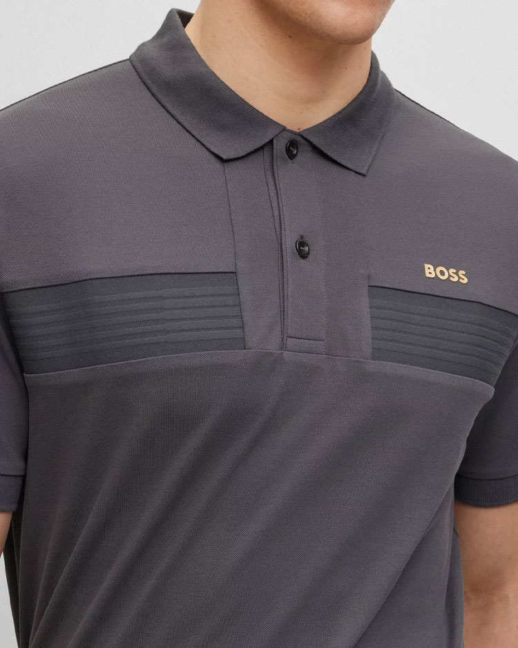 טי שירט גברים בגזרה דקה של בוס, עשויה כותנה עם מתיחה אקטיבית, המעניקה נוחות וגמישות אידיאלית לכל תנועה. עיצוב אלגנטי עם סרט פסים ייחודי ורקמת לוגו למראה מתוחכם ומעודכן. הדגם כולל צווארון סרוג שטוח, שרוולים קצרים, ושני כפתורים בחזית, מה שהופך אותו לאידיאלי לשימוש יומיומי או ללוק קז'ואלי-מחויט. חולצת טי שירט זו היא פריט חובה לכל מי שמחפש שילוב בין אלגנטיות ונוחות בלתי מתפשרת.