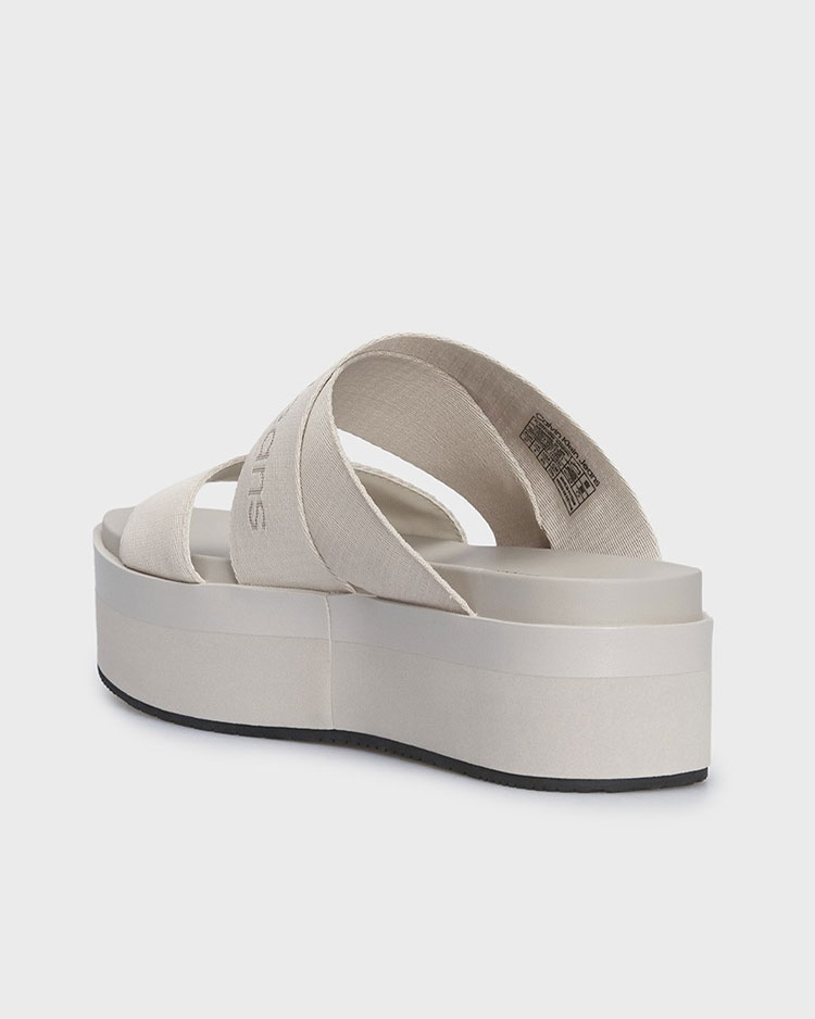 כפכפי פלטפורמה בעיצוב מודרני ומודע לסביבה, עם רצועות עשויות 100% פוליאסטר ממוחזר – תוצאה של עיבוד חומרים קיימים למראה חדשני ומעודכן. סוליית EVA רכה, בטנת טוויל ממוחזרת ונוחות מרבית בגובה עקב של 6 ס"מ. מאפיינים: